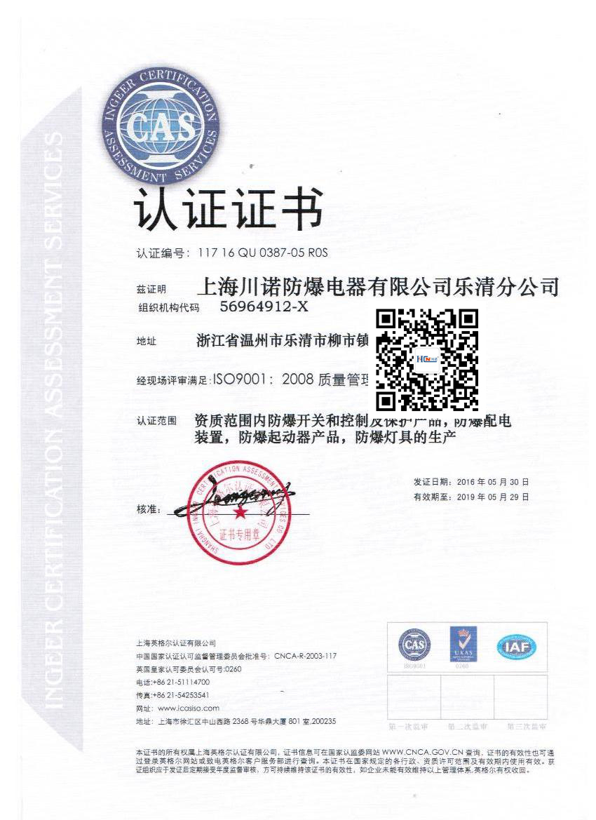 热烈庆祝我司取得IS09001质量
